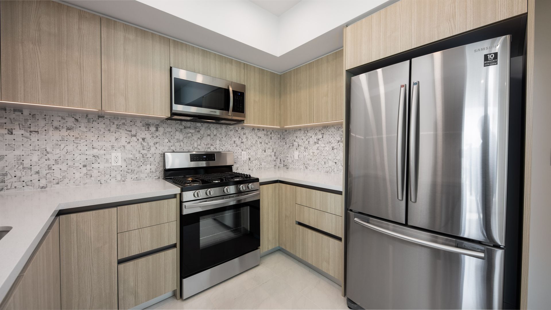 The building is located between Olympic and Pico, 2 streets away from La Cienega, and available for immediate occupancy. Central Air Condition, new Samsung French Door refrigerator, gas Stove/Range, built-in Microwave, Dishwasher, built-in closets, walk-in closet, Washer/Dryer in unit, double-panned windows with solar shades, and gym conveniently located on the first floor. The building also has controlled access intercom and a common area rooftop.